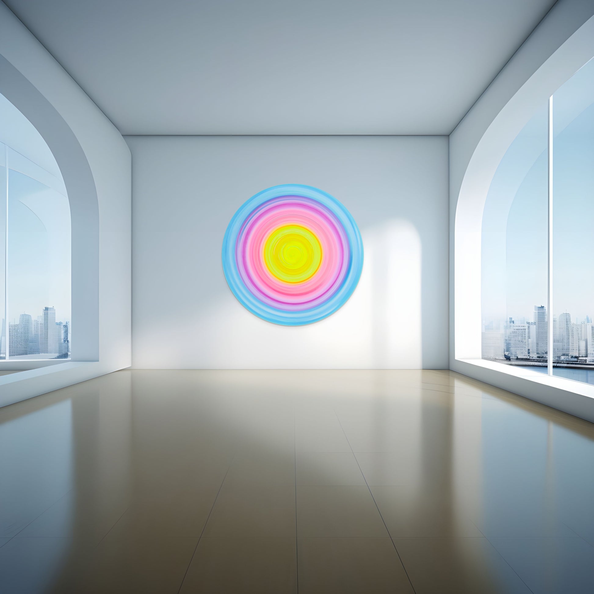 Euphoria captivates with a sophisticated blend of vibrant yellows, magentas, and cyans. This large mindfulness circle that emanates positive energy, this artwork serves as a striking focal point while promoting a sense of balance and wellbeing. Perfect for spaces dedicated to reflection and creativity, Euphoria invites you to experience moments of serene clarity.